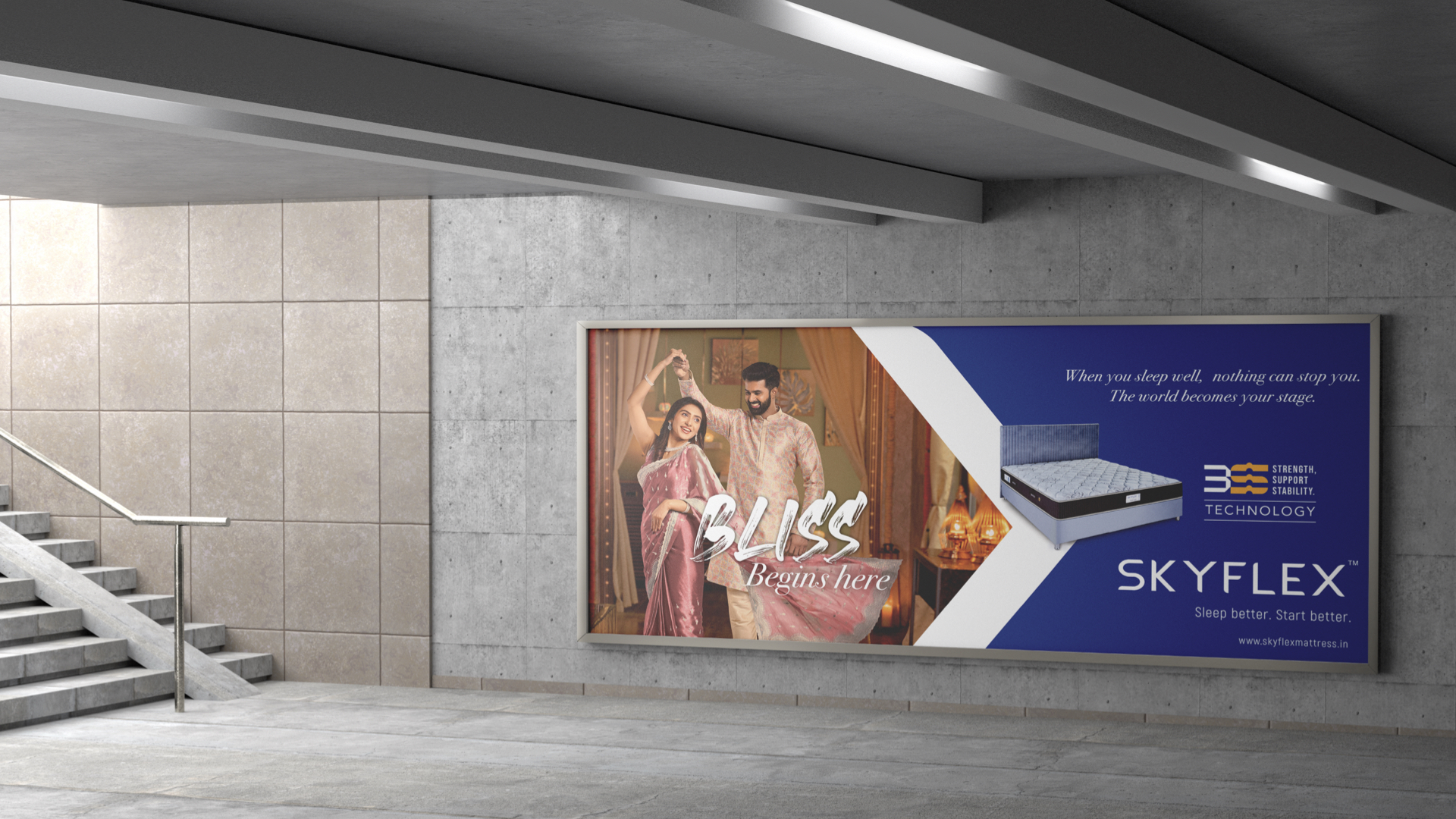 Our client, ‘SKYFLEX’, sought a rebranding for their long-standing home furnishing brand in the highly competitive southern regional market. The market is saturated with either mass-appeal or super- premium brands, lacking unique designs. Our goal was to create a distinctive new design that would achieve merchandising success and stand out from the competition.